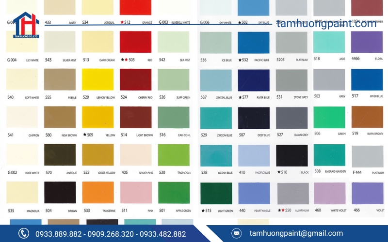 Bảng màu sắc đa dạng và có giá thành hợp lý