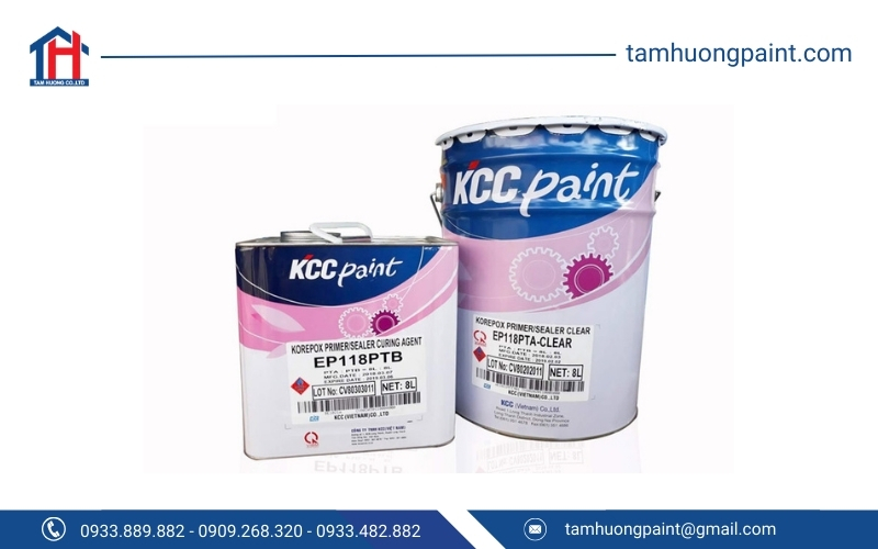 Sơn KCC EP118 có hai thành phần chính là: sơn phủ sàn epoxy và Ep118 đảm bảo độ cứng cho bề mặt được chắc chắn hơn.