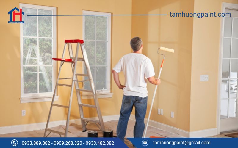 • Sử dụng 1 trong các dụng cụ thi công sau: máy phun sơn, cọ, con lăn, hay tán sơn