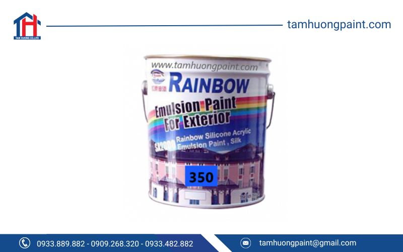 350 Rainbow Emulsion Paint hay sơn Rainbow 350 ngoại thất bóng mờ có nguồn gốc từ nhựa acrylic (chịu nước, chịu kiềm vô cùng tốt) kết hợp với nguyên liệu màu có khả năng che phủ tốt và chất phụ gia tinh tế.