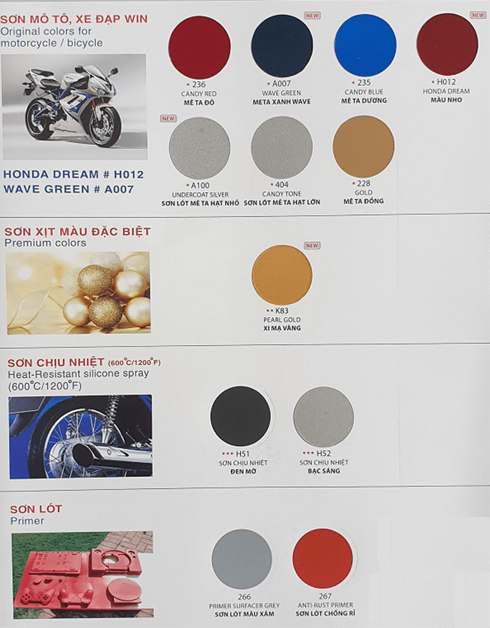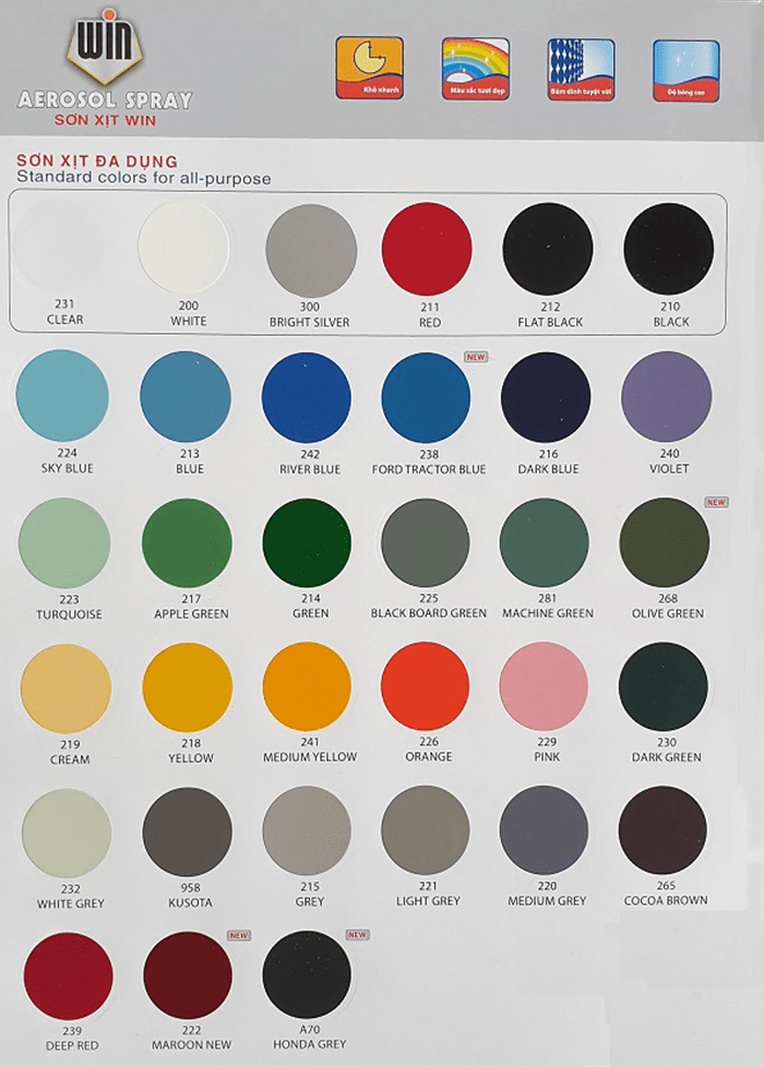 BẢNG MÀU SƠN XỊT WIN ĐẶC BIỆT