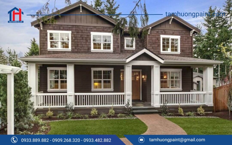 Sơn ngoại thất màu nâu mộc mạc ấm cúng