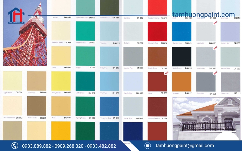 • Hệ thống bảng màu sơn phong phú, đáp ứng tốt mọi yêu cầu của khách hàng.