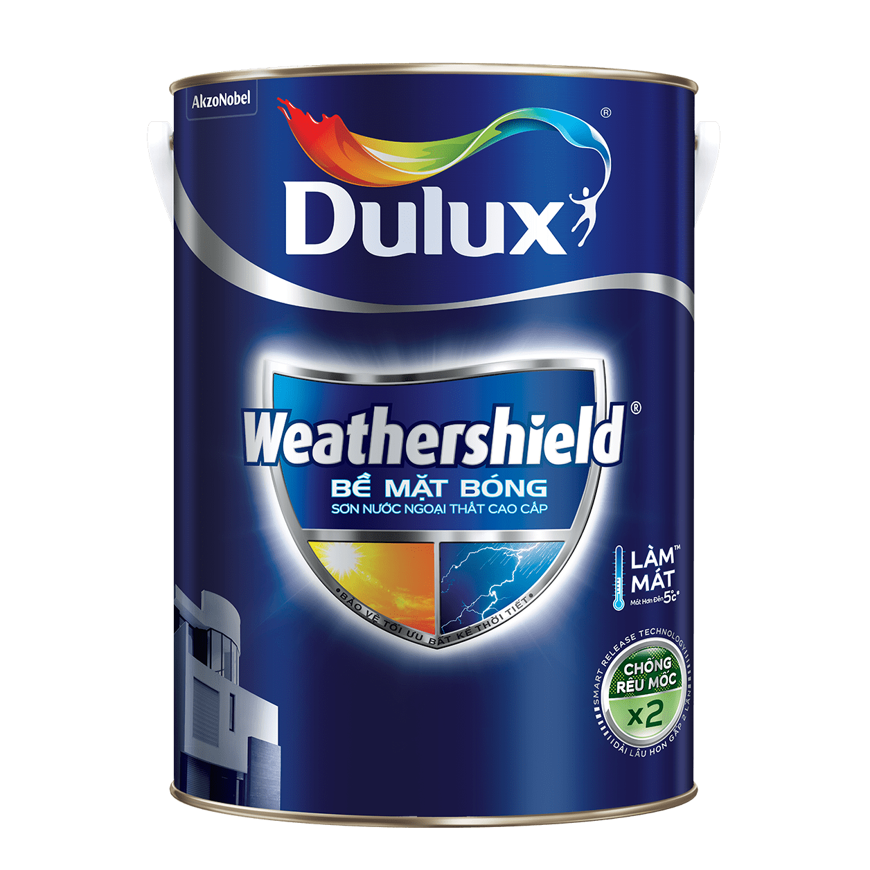 – Sơn Dulux Weathershield là Sơn nước cao cấp ngoài trời với nước sơn bóng đẹp lộng lẫy đầy quyến rũ, kết hợp với khả năng đàn hồi tối đa không bị rạn nứt theo vết nứt của tường, sơn tạo một lớp bảo vệ tối đa ngay trong điều kiện thời tiết khắc nghiệt nhất giúp mang lại một vẻ đẹp sang trọng cho ngôi nhà của bạn.